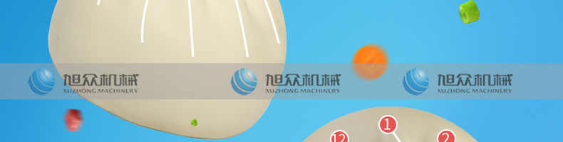 XZ-512包子機(jī),仿手工捏花12個(gè)花褶,外形美觀??芍谱鞯姆N類肉包、肉菜包、菜包、圓饅頭、奶黃包、豆沙包、叉燒包、南瓜餅、純白糖包,多種場(chǎng)所輕松適應(yīng)。