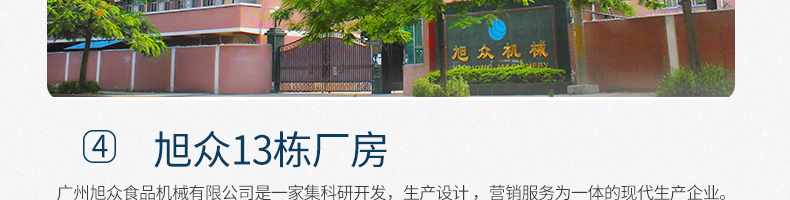 廣州旭眾食品機(jī)械有限公司是一家集科研開發(fā),生產(chǎn)設(shè)計(jì),營(yíng)銷服務(wù)為一體的現(xiàn)代化生產(chǎn)企業(yè)?,F(xiàn)代化生產(chǎn)車間,精湛制造技術(shù),所產(chǎn)機(jī)械歷經(jīng)市場(chǎng)重重考驗(yàn),不斷贏得海內(nèi)外客戶的贊譽(yù)。