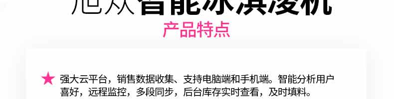 無人售貨冰淇淋機(jī), 人工成本越來越高,無人店、無人售賣機(jī)必將是一個趨勢。簡單而又重復(fù)的勞動(售賣)必將被智能無人替代。無人售貨自助冰淇淋機(jī)支持多種支付方式,支持遠(yuǎn)程監(jiān)管功能,支持預(yù)冷保鮮,支持多種口味混合,自動清洗少料報警。無需人工、場地?zé)o限制。