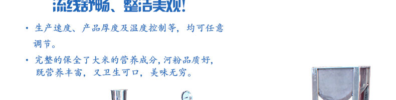 SZ-HF-500高效節(jié)能河粉機,生產(chǎn)速度、產(chǎn)品厚度及溫度控制等,均可任意調(diào)節(jié)