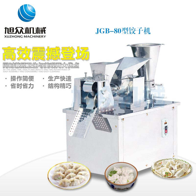 JGB-80型號(hào)餃子機(jī),本機(jī)是一款可生產(chǎn)各種肉餡、肉菜混合餡、全菜餡及其他種餡餃子的設(shè)備。包制出來的餃子可蒸、煮、炸、煎等多種調(diào)理。適用于賓館、飯店、餐廳、團(tuán)體食堂加工,幼兒園、速凍餃子生產(chǎn)。