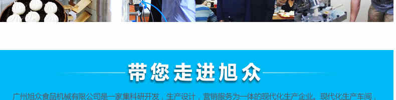 廣州旭眾食品機(jī)械有限公司是一家集科研開(kāi)發(fā),生產(chǎn)設(shè)計(jì),營(yíng)銷服務(wù)為一體的現(xiàn)代化生產(chǎn)企業(yè)?,F(xiàn)代化生產(chǎn)車間,精湛制造技術(shù),所產(chǎn)機(jī)械歷經(jīng)市場(chǎng)重重考驗(yàn),不斷贏得海內(nèi)外客戶的贊譽(yù)。