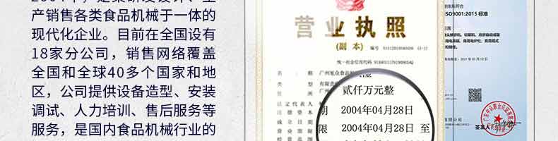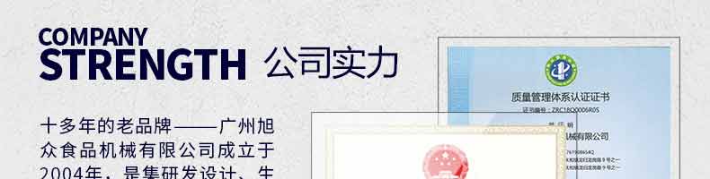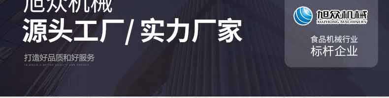 廣州旭眾食品機械有限公司是一家集科研開發(fā),生產設計,營銷服務為一體的現(xiàn)代化生產企業(yè)。現(xiàn)代化生產車間,精湛制造技術,所產機械歷經市場重重考驗,不斷贏得海內外客戶的贊譽。