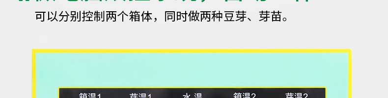 芽苗機(jī)系列,全自動(dòng)芽苗機(jī):智能化一生產(chǎn)安全無(wú)公害的芽苗,智能控溫、定時(shí)淋水、自帶照明裝置,給芽苗提供一個(gè)適宜生長(zhǎng)的溫度,濕度,個(gè)人即可輕松搞定,實(shí)現(xiàn)每天循環(huán)生產(chǎn)芽苗!